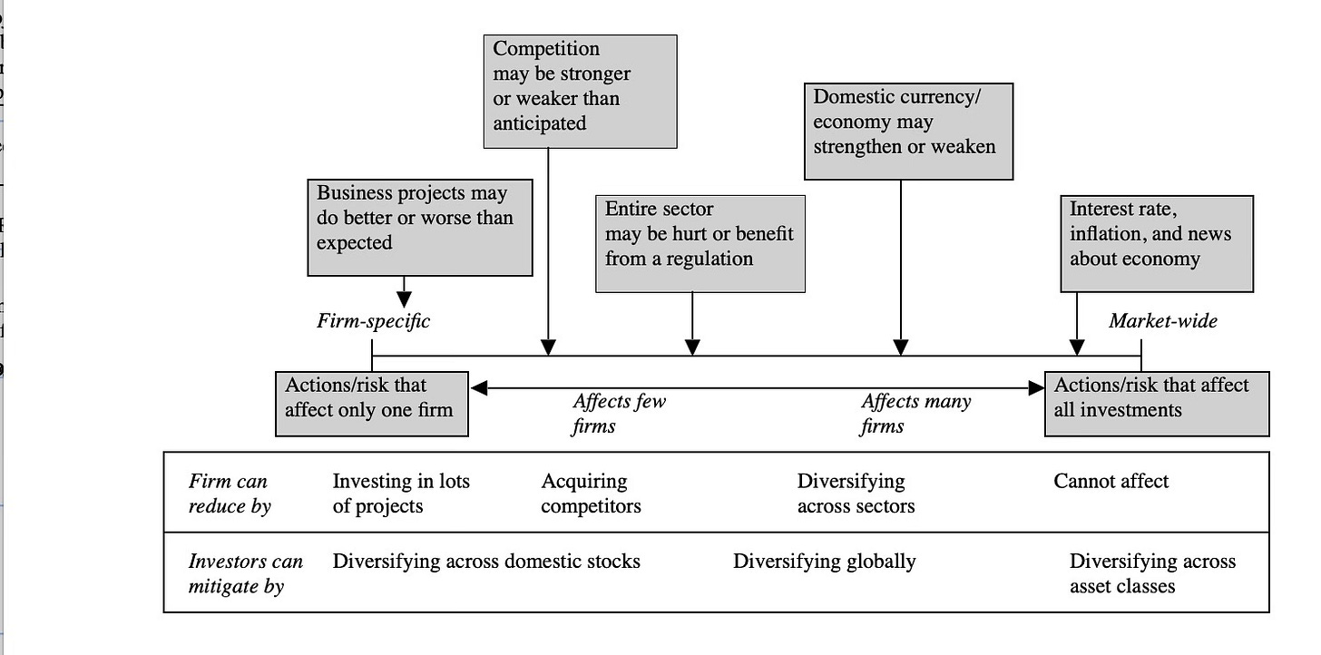 To the question of why we should care, the presence of many investments in a portfolio implies that risks that are investment-specific will average out, decreasing or even disappearing as portfolios get larger, whereas market risks remain intact. This insight, which earned Harry Markowitz a Nobel prize, gave birth to modern portfolio theory and is at the heart of most risk and return models in finance.