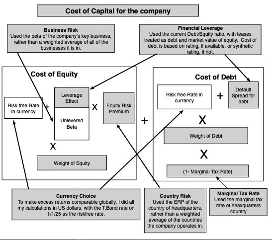 That is what all risk and return models try to do, albeit with different degrees of fidelity to the principle. In fact, my use of an implied equity risk premium in the estimation of the cost of equity is designed to advance this cause, since it is model-agnostic and reflects what investors are pricing stocks to earn, on an annual basis. Thus, when you use the beta in the capital asset pricing model to derive the cost of equity, you should be computing the return you can earn elsewhere in the market on other investments with the same beta, making the cost of equity the hurdle rate for equity investments in a project or company. The cost of capital, which incorporate the cost of borrowing into its construct, is also a hurdle rate, albeit to both debt and equity providers: