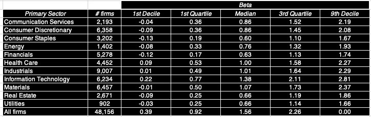 If you are interested in a less broad categorization, you can check out betas by industry at the end of this post.