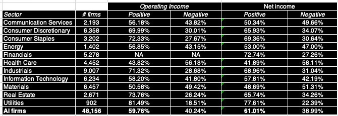 If you use the frequency of loss-making, as a risk proxy, the table below captures differences on that metric across sectors on this dimension: