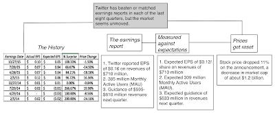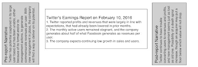 As with Facebook, I first valued Twitter in October 2013, just before its IPO and arrived at an estimate of value of 17.36 per share. My initial narrative for the company was that it would be successful in attracting online advertising, but that its format (the 140 character limit and punchy messages) would restrict it to being a secondary medium for advertisers (thus limiting its eventual market share).The stock was priced at $26, opened at $45 and zoomed to $70, largely on expectations that it would quickly turn its potential (user base) into revenues and profits. However, in the three years since Twitter went public, it is disappointing how little that narrative has changed. In fact, after the most recent earnings report, my narrative for Twitter remains almost unchanged from my initial one, and is more negative than it was in the middle of last year.